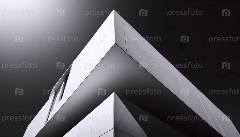 Черно-белый фотографический принт современной архитектуры середины века, Ai generated image