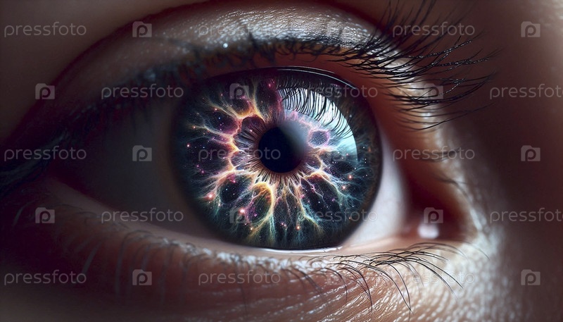 Макроотражание глаз с звездным небом, Ai создал изображение
