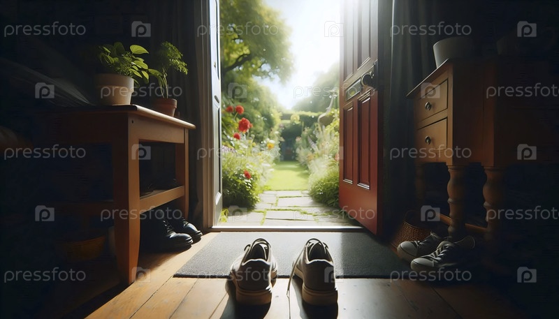 На более широком снимке, показывающем дверной проход и взгляд на внешний мир, Ай создал изображение
