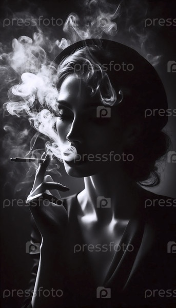 Винтажный фильм-нуар курящий портрет, Ai generated image