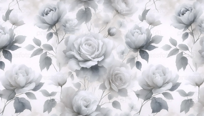 Абстрактный акварельный цвет белой розы свадебный бесшовный шаблон, Ai generated image