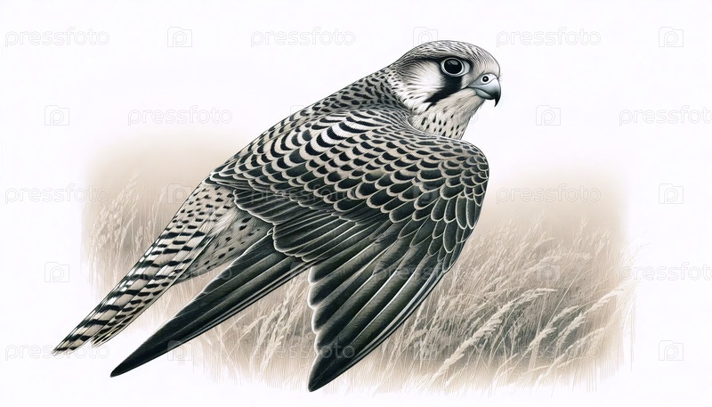 A swift falcon ink drawing art print, Ai generated image Авиационный принт с чернилами сокола