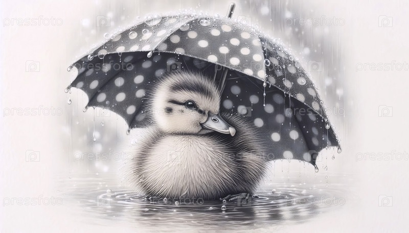 Утка под дождевым зонтиком чернила рисует художественный принт, Ai generated image