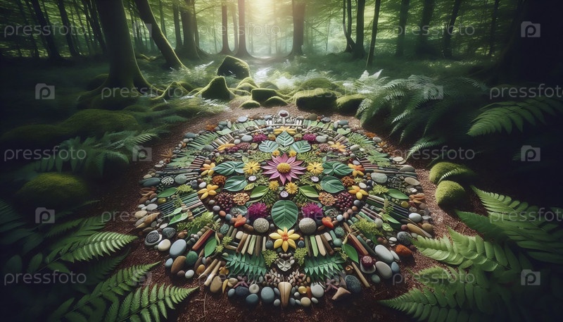 Мандала из натуральных материалов, Ai generated image