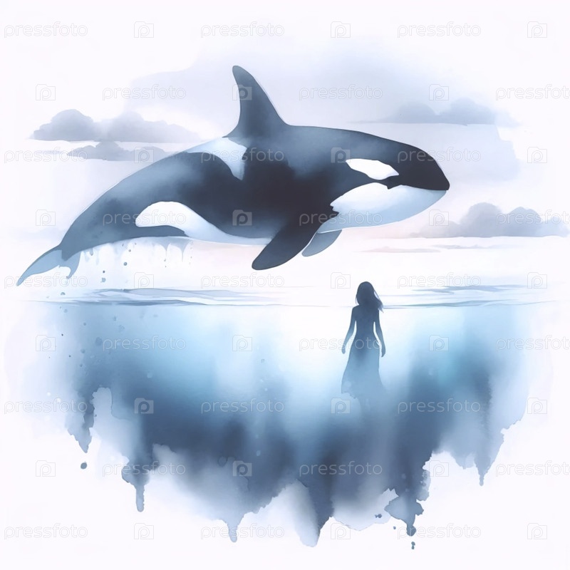 акварельный цвет кита-орки