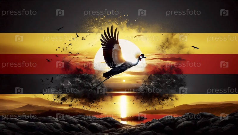 Флаг Уганды у истоков Нила и озера Виктория, Ai generated image