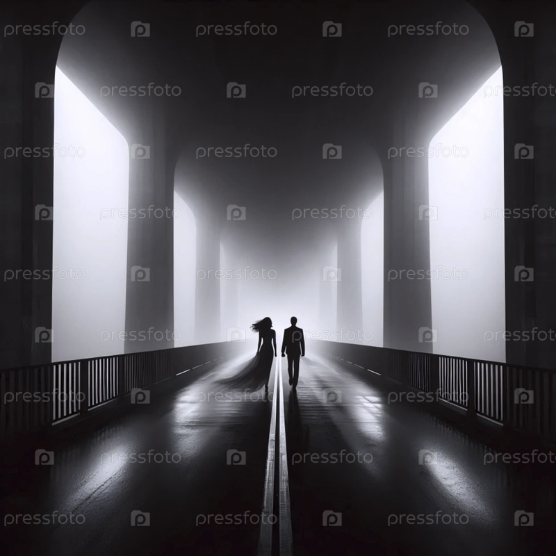 Размытый пар, идущий по мосту ночью, Ai generated image