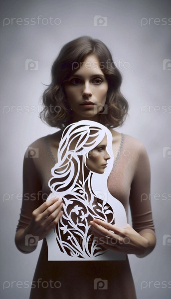 Женщина, держащая свой бумажный силуэт, Ai generated image
