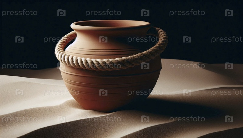 Макет необработанного терракотового растения с рукояткой из плетеной конопляной веревки, изолированный на песочнице, Ai generated image