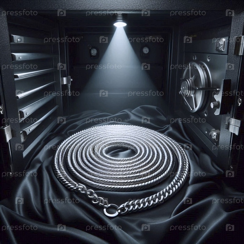 Простой, пустый макет цепочки-ожерелья, свернутый на куче черного шелка, Ай создал изображение