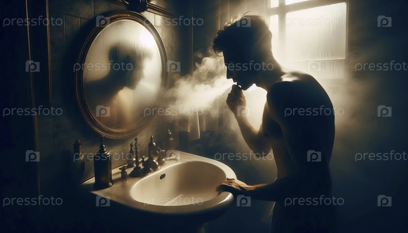 Более широкий снимок в винтажной ванной комнате, паровой и одиночной, Ai generated image