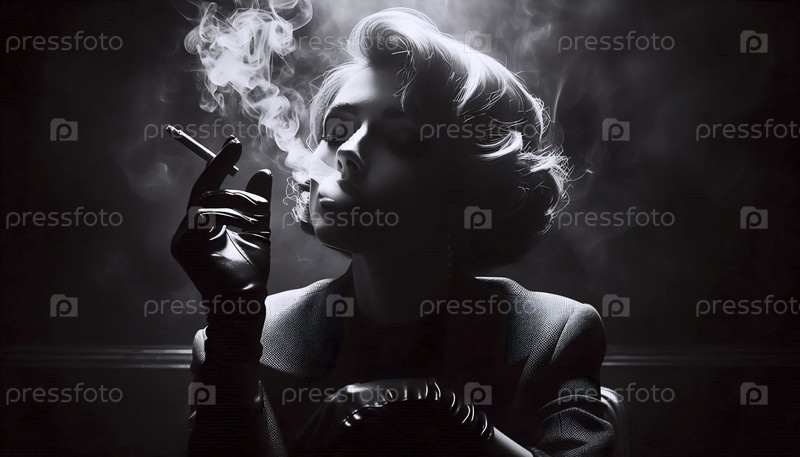 Винтажный фильм-нуар курящий портрет, Ai generated image