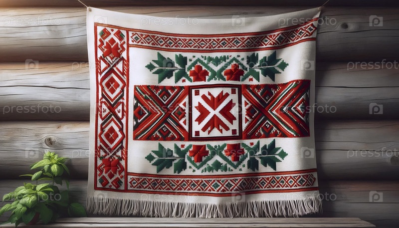 Белорусский флаг в народном текстильном орнаменте rushnik, Ai generated image