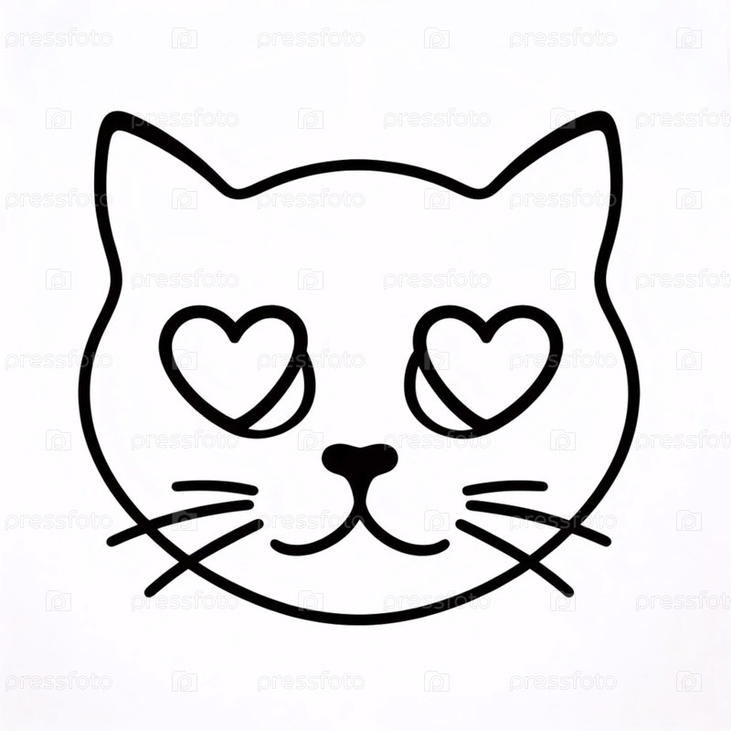 Минималистский линейный рисунок кошки с учениками сердца, Ai generated image