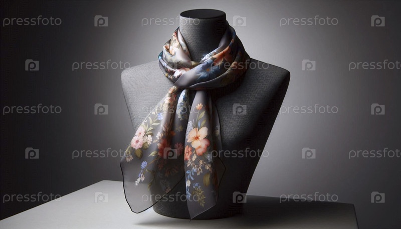 Мокет цветочного шелкового шарфа, искусственно устроенный в свободном узле на шее темного манекена, Ай создал изображение
