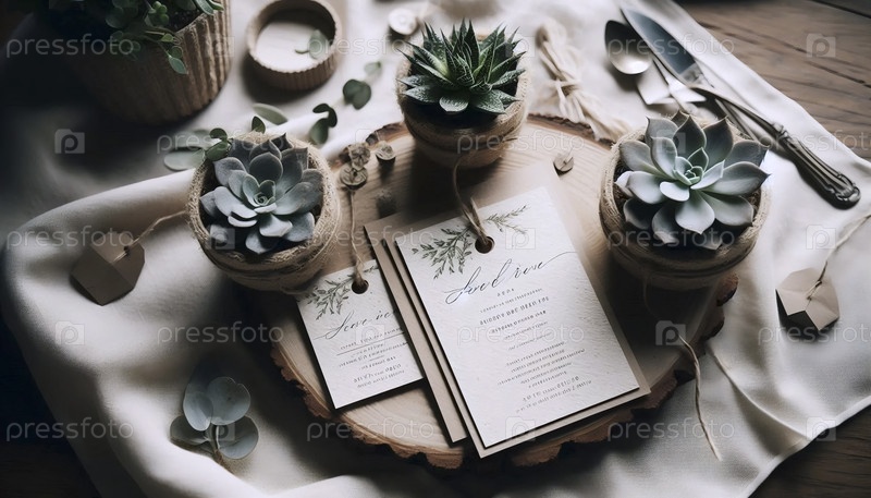 Детали устойчивых свадебных услуг и канцелярских принадлежностей, Ai generated image