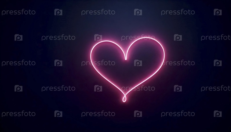Непрерывно светящееся художественное сердце неоновой линии, Ai generated image