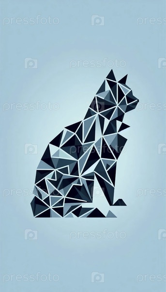 Абстрактное геометрическое искусство силуэта кошки, Ai generated image