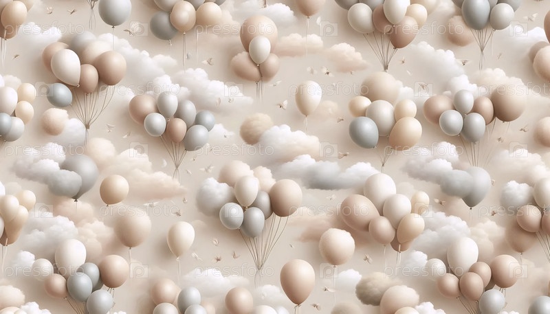 Нейтральные шары бесшовный рисунок облака пастельный бежевый коричневый земляные дети, Ai generated image