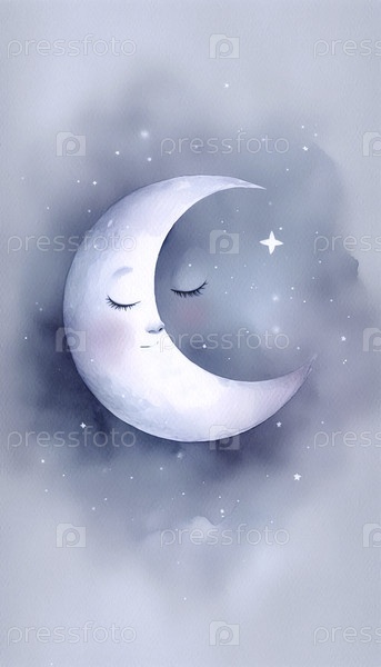 Спящая Луна акварельный арт-принт, Ai generated image A