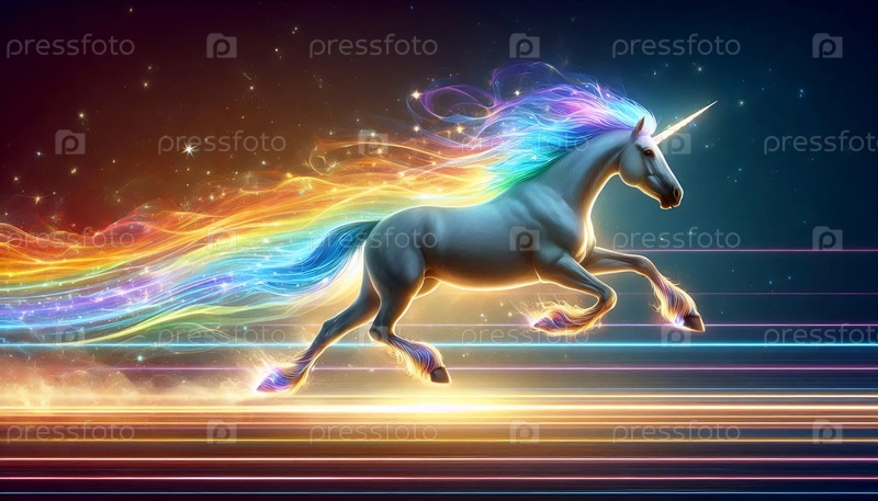 Единорог с радужным следом, Ai generated image
