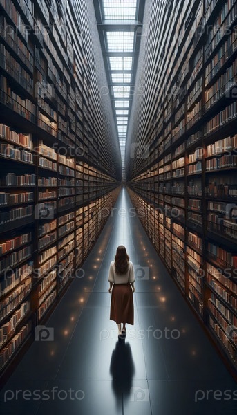 Широкий снимок библиотекаря, исчезающего в стеках, Ай создал изображение