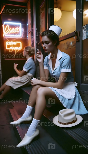 Официантка в ресторане на перерыве, Ai generated image