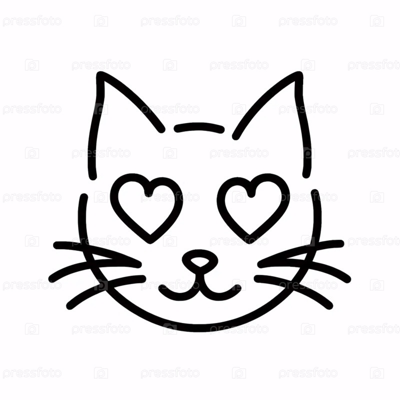 Минималистский линейный рисунок кошки с учениками сердца, Ai generated image