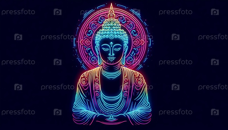 Художественное произведение неонового Будды, Ai generated image