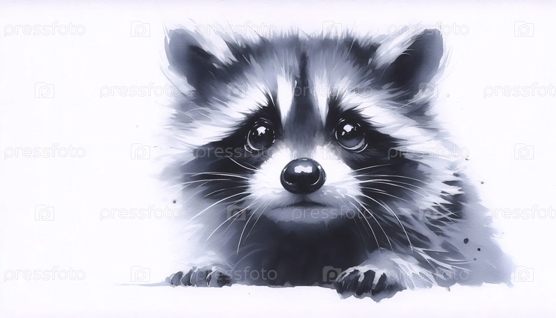 Cute Raccoon акварельный художественный печат, Ai generated A image