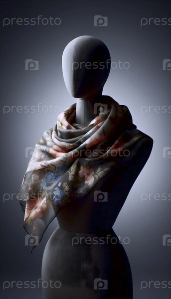 Мокет цветочного шелкового шарфа, искусственно устроенный в свободном узле на шее темного манекена, Ай создал изображение