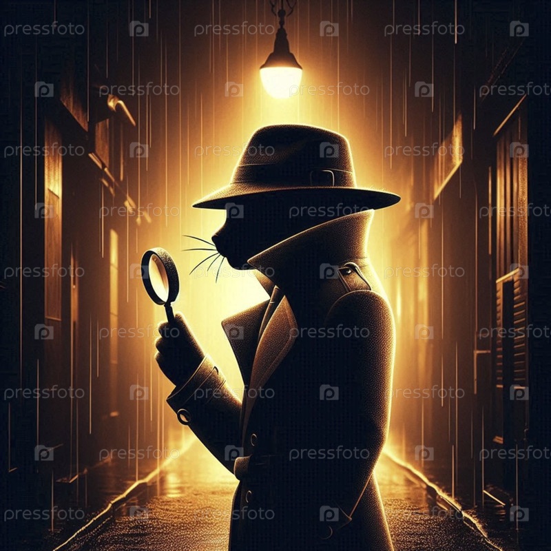 A noir detective cat in a trench coat sticker, Ай создал изображение