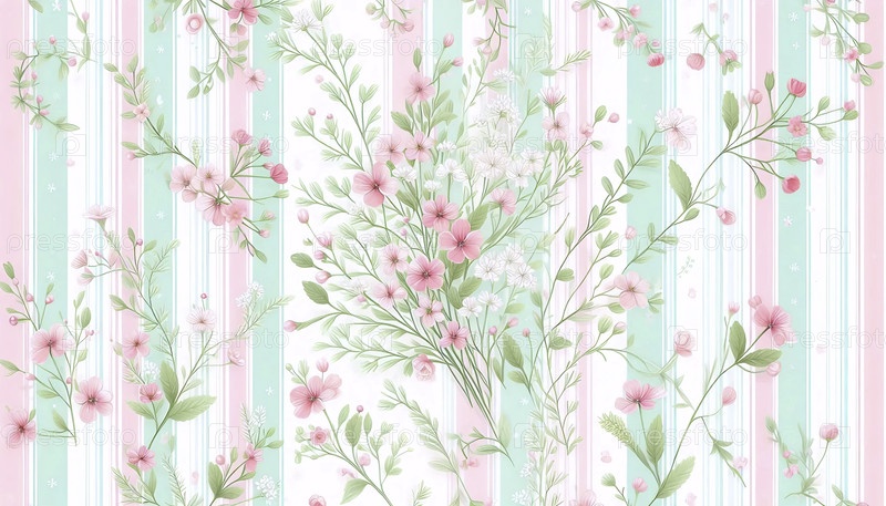 Образец с розовыми цветами и полосами Весенний цветочный милый, Ai generated image