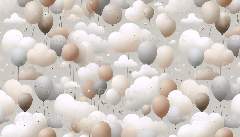 Нейтральные шары бесшовный рисунок облака пастельный бежевый коричневый земляные дети, Ai generated image