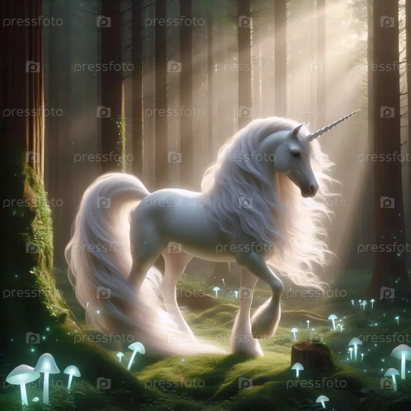Единорог в зачарованном лесу, Ai generated image