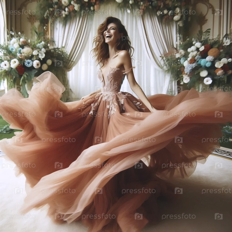 Невеста в нетрадиционном цветном свадебном платье, Ai generated image