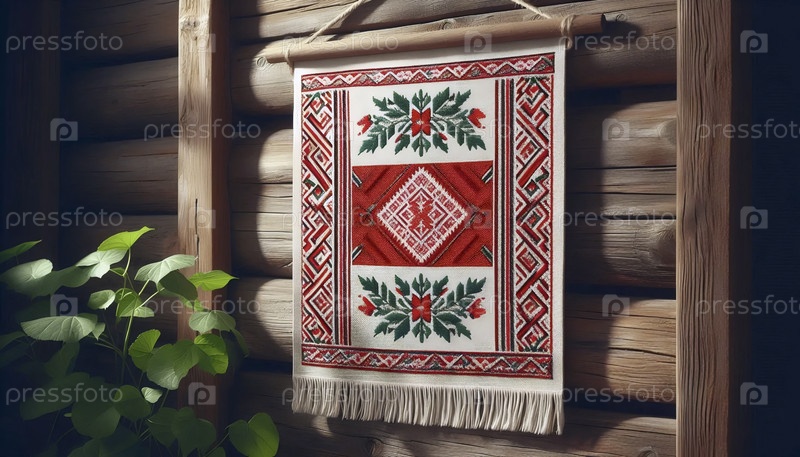 Белорусский флаг в народном текстильном орнаменте rushnik, Ai generated image