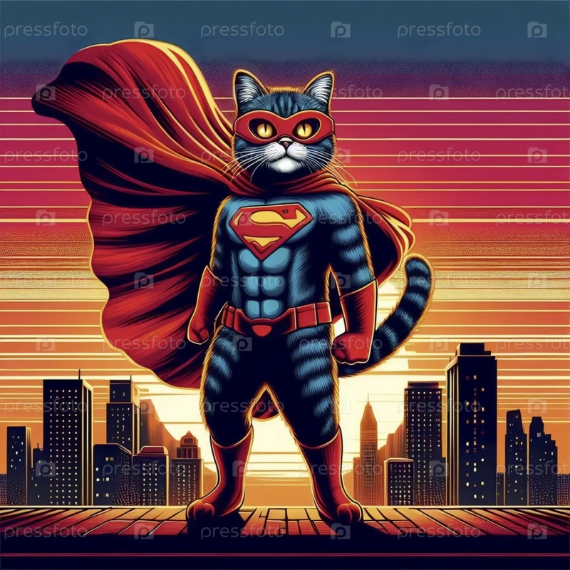 Супергерой-кошка в плато, афиша Ai generated image