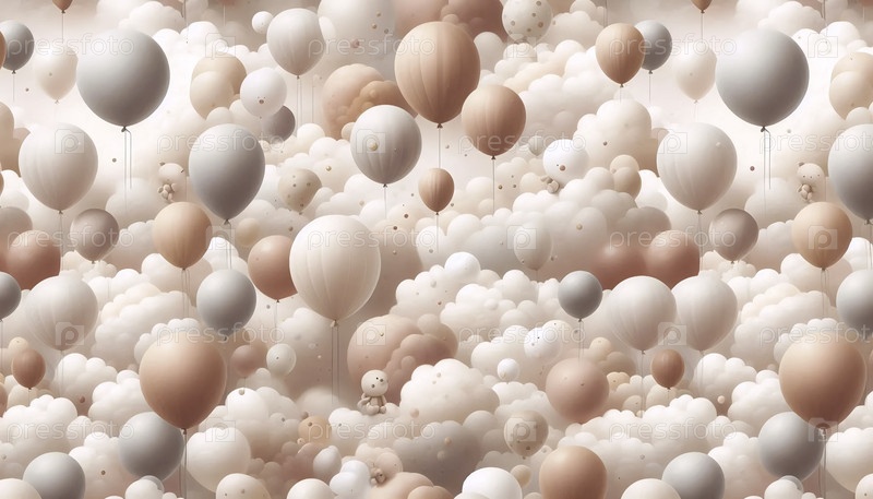 Нейтральные шары бесшовный рисунок облака пастельный бежевый коричневый земляные дети, Ai generated image