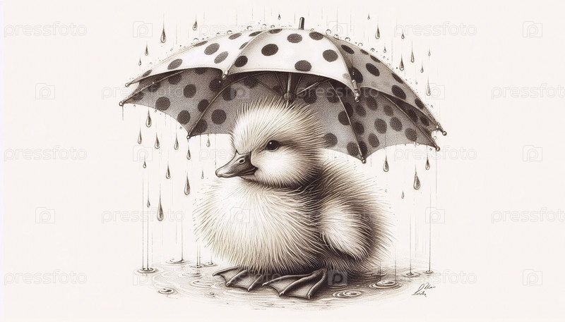 утка под зонтиком чернила рисунок