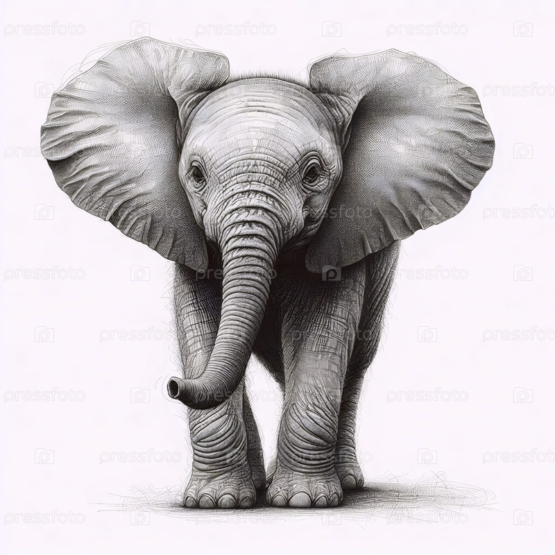чернильный рисунок детского слона