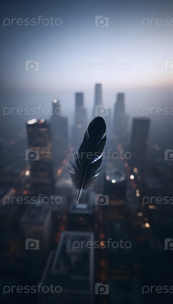 Одно перо, помещенное в грязь на крыше небоскреба, Ai generated image