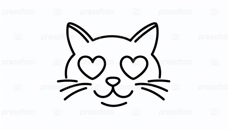 Минималистский линейный рисунок кошки с учениками сердца, Ai generated image