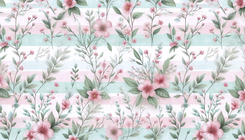 Образец с розовыми цветами и полосами Весенний цветочный милый, Ai generated image