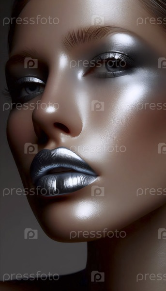 Портрет с металлическими серебряными губами, Ai generated image