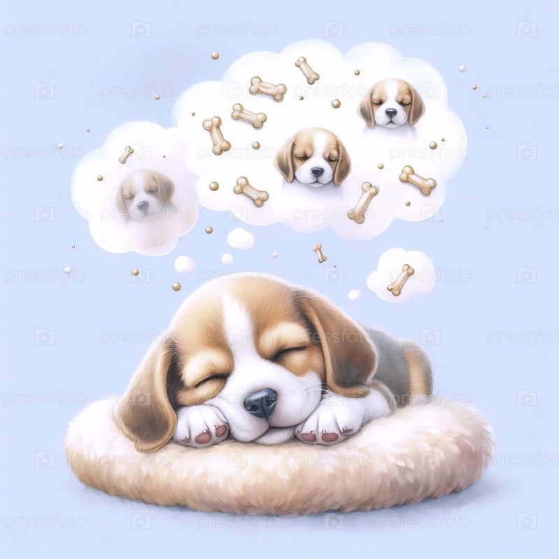 Щенок мечтает о костях Акварельный арт-принт, Ai generated image