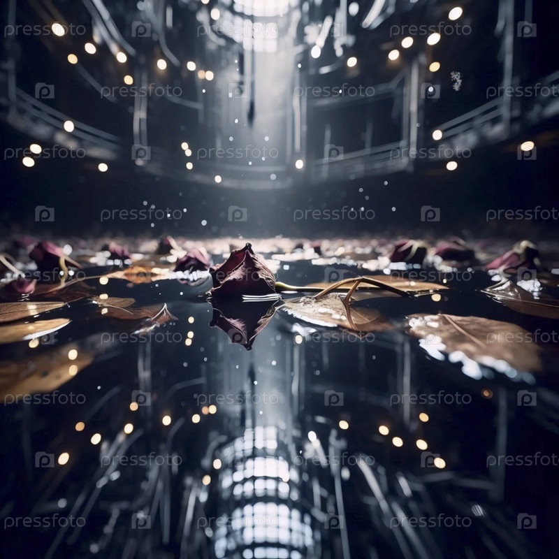 Ближайший план увядающих листьев, плавающих в отражающейся луже, Ай создал изображение