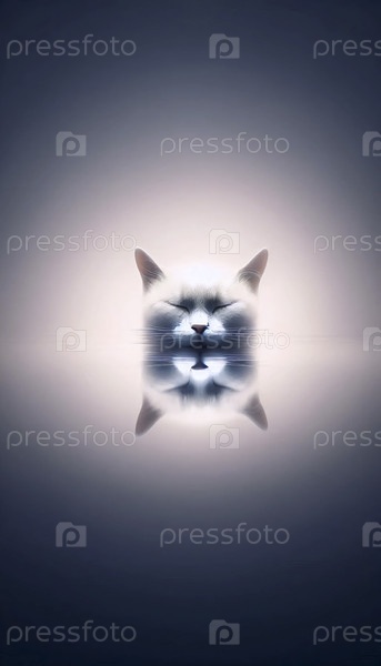 Мечтательный плакат с отражением кошки, Ai generated image