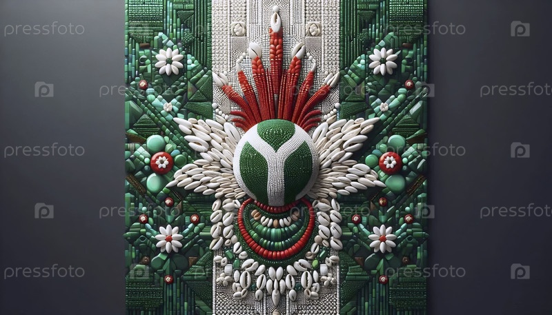 Нигерийский флаг в традиционной бусинке и искусстве йорубы, Ai generated image