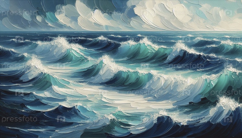 Текстильная масляная живопись океанских волн, Ai generated image A